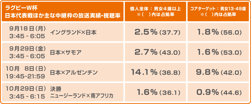 主力の地上波放送では、2023年度上半期の個人・コア視聴率において、全日帯・ゴールデン帯・プライム帯の各時間帯でトップとなる三冠王を12年連続で獲得しました。2023年度は、バスケットボールやラグビーのワールドカップを中継し、新春には、第100回の記念大会となる「箱根駅伝」を放送します。